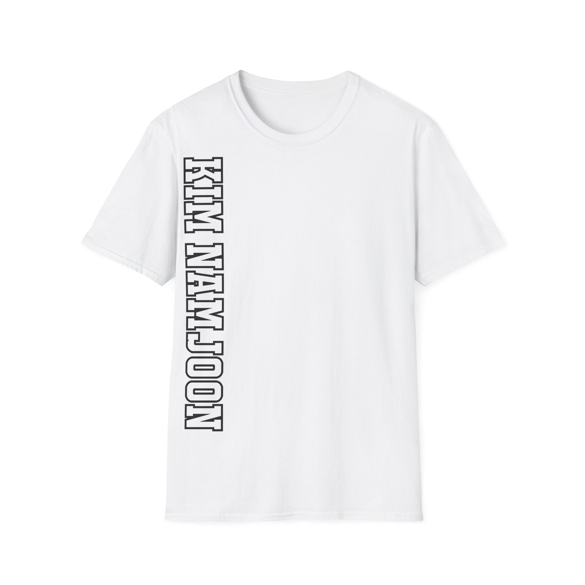 Declare your ARMY pride with this stylish and comfortable black t-shirt, featuring the iconic name "KIM NAMJOON" printed boldly in white, running vertically down the side. Made from soft, breathable fabric, this tee is a must-have for any fan. Perfect for casual outings, fan gatherings, or just lounging at home while streaming your favorite BTS tracks.